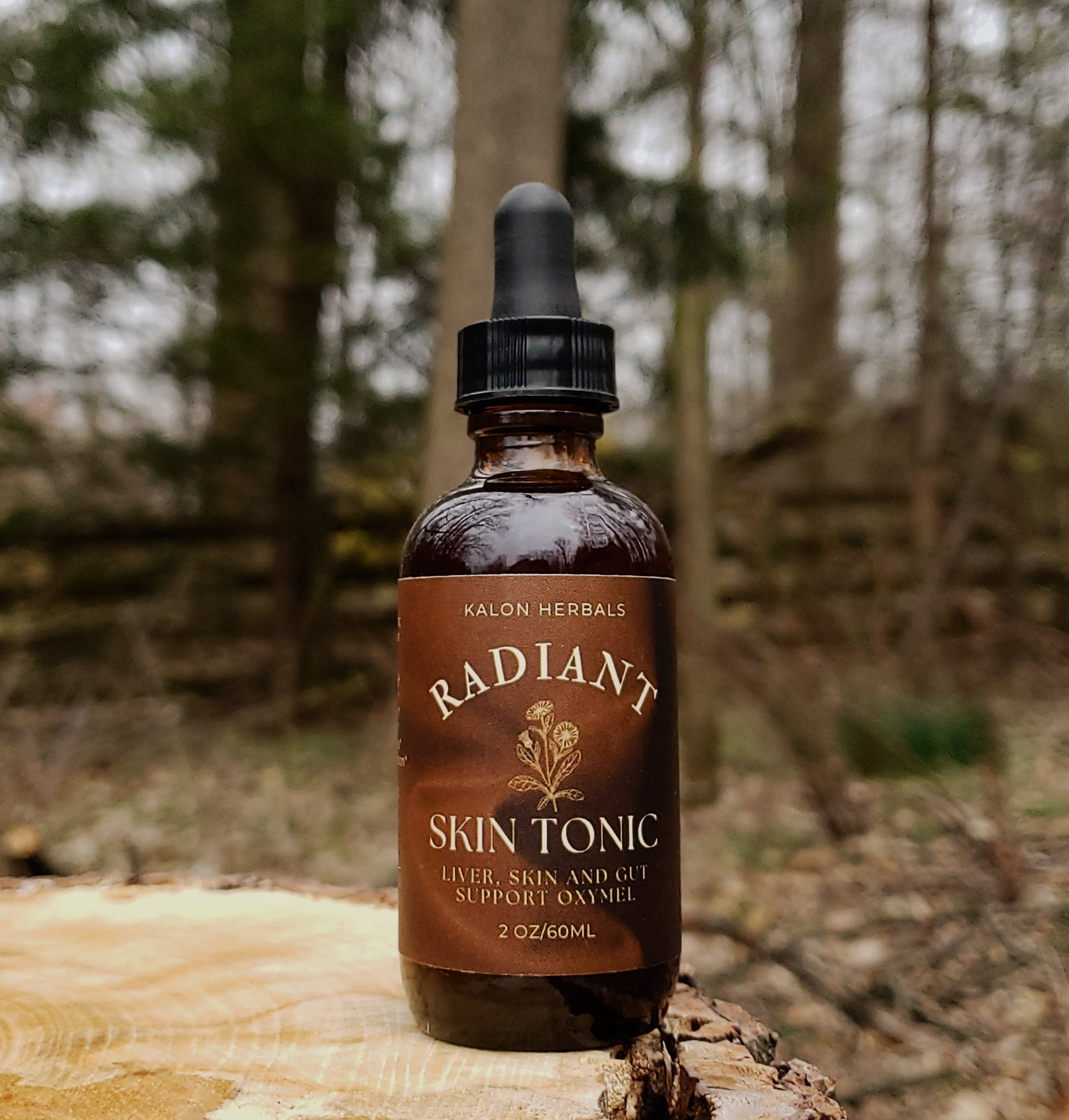 Oxymels are a simple alcohol free way to get essential vitamins and minerals. This particular blend is high in antioxidants and vitamin C, which can help protect your skin from free radicals and harmful blue light. Your liver and gut play directly into your skin health, so a healthy liver and digestive system means healthy skin. This oxymel works with roots like Burdock, Dandelion and Yellowdock to support liver health, and herbs like calendula and Butterfly Pea Flowers to support radiant skin. Local, raw, unfiltered honey is wonderful gut and skin support.